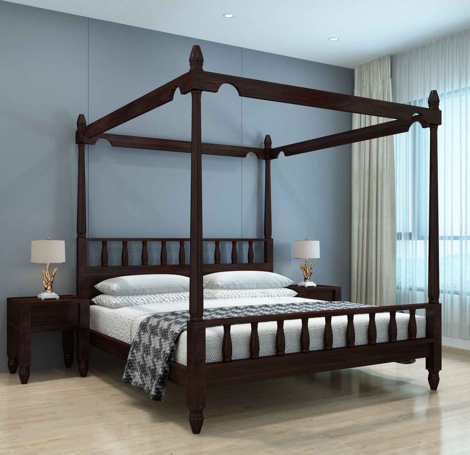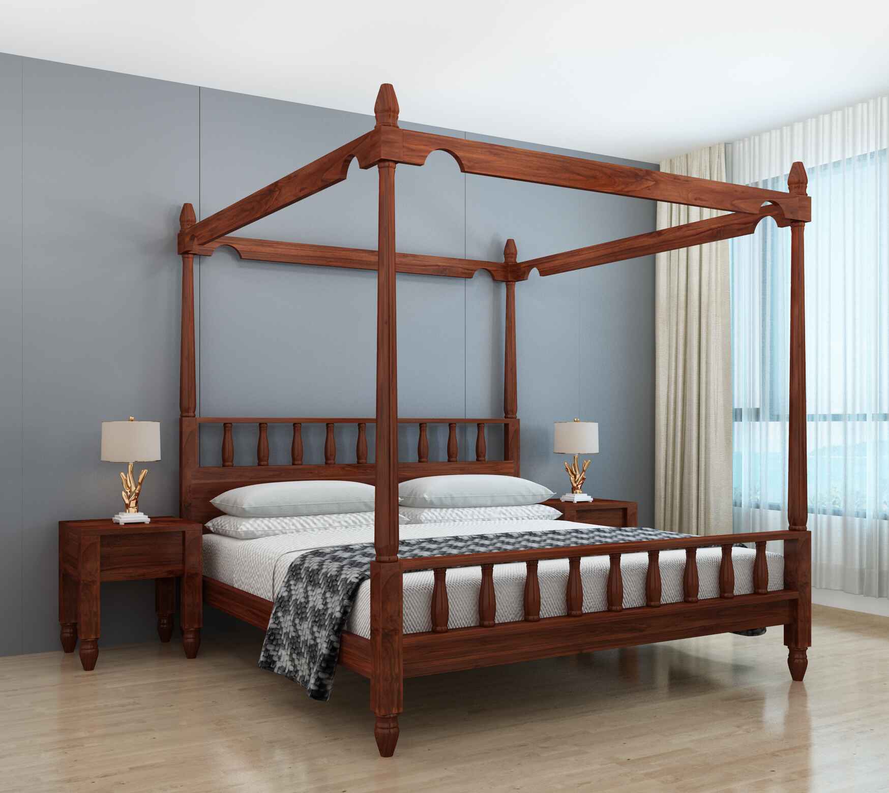 Bellezza Poster Sheesham Bed Withour Storage (King Size, Natural Finish)