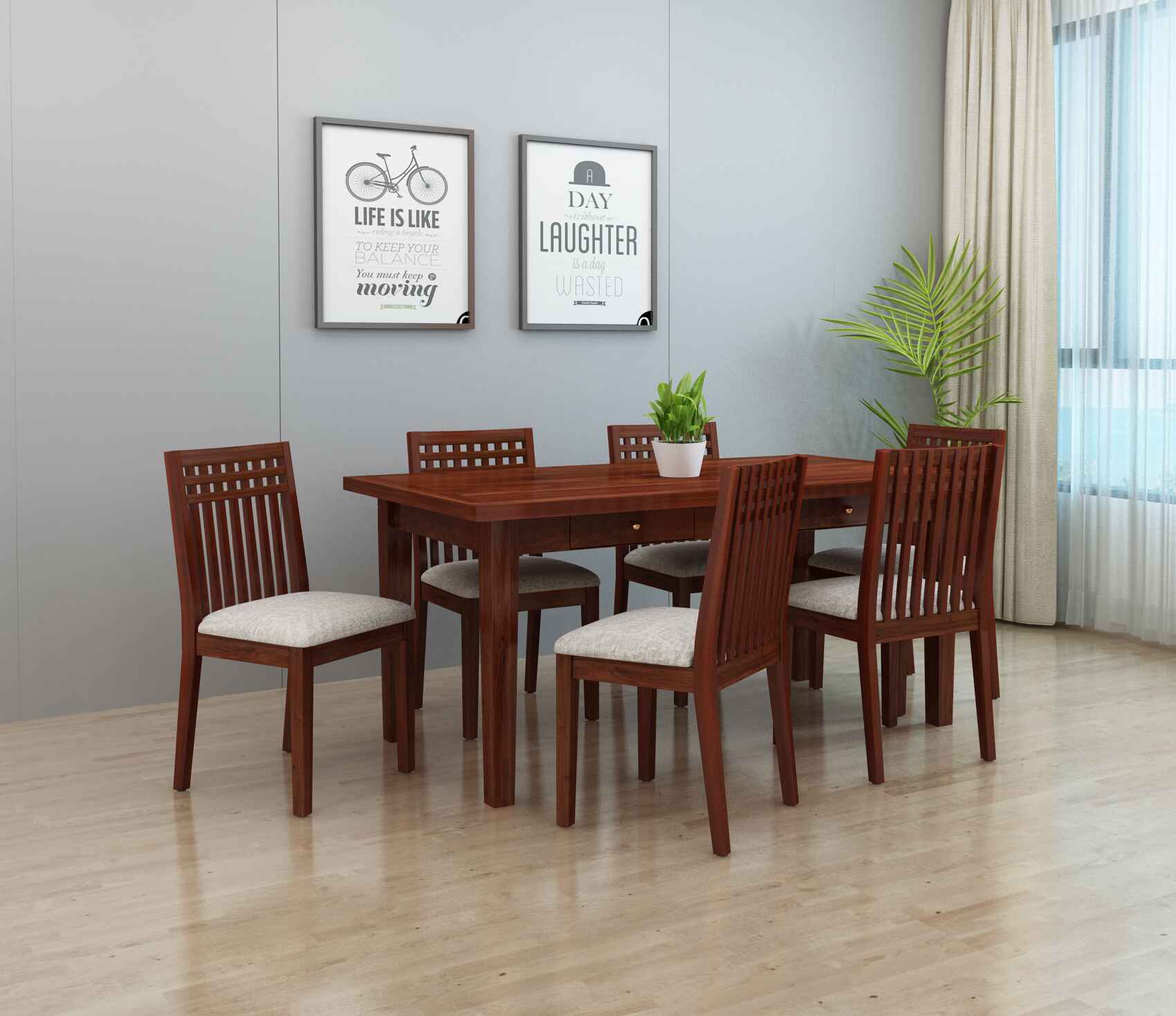 Classic Sheesham 6 Seater Dining Table Set With Storage (Walnut Finish)